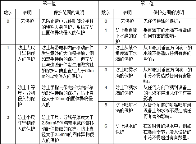 防護等級是由Ingress Protection縮寫表示,該縮寫由兩個固定識別字母“IP”和兩個表示防護程度的特征數字組成,例如:IP68——表示防護等級的最高級別。
